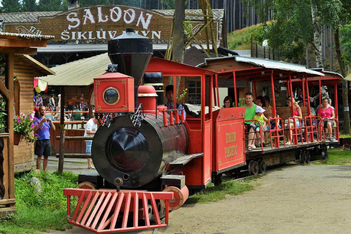 Vyhlídkový vláček vás proveze napříč westernovým městečkem. Poblíž náměstí ...